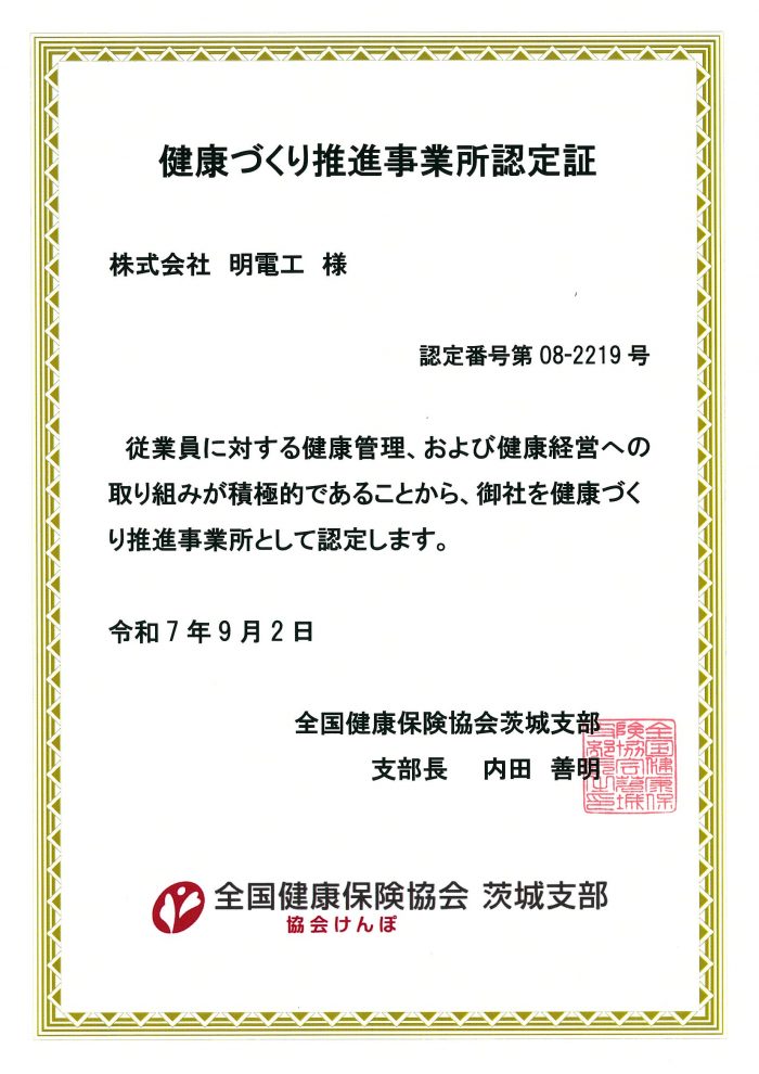 このたび当社は、協会けんぽより『健康づくり推進事業所』として認定を受けました。