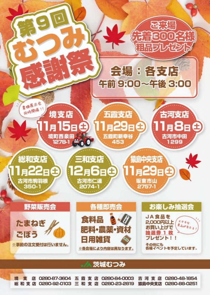 JA茨城むつみ様の全6支店を会場に、「第9回むつみ感謝祭」が開催されます。